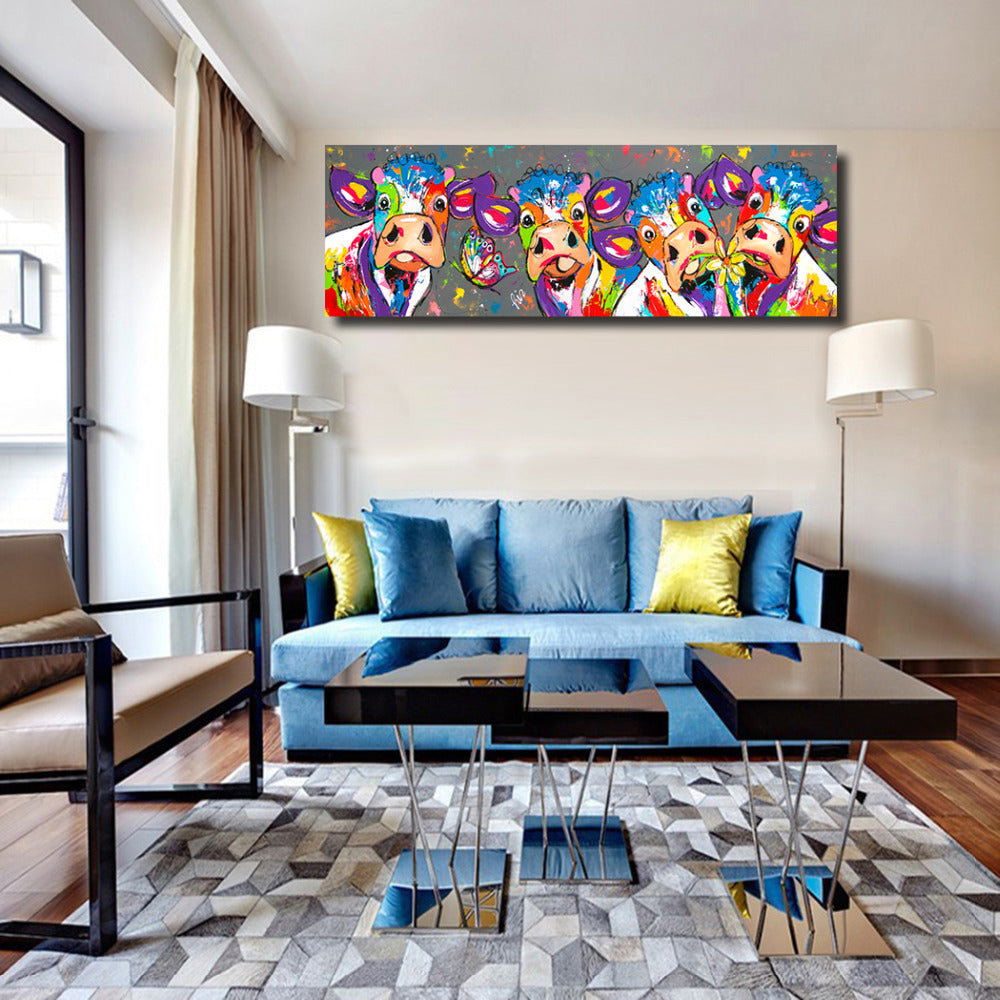 Four Cows Animals Graffiti Oil Painting